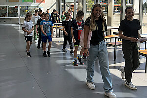 Alle fünften Klassen durchliefen mehrere Stationen, die mit unserem Schulalltag zu tun hatten, wie zum Beispiel „Wo ist der Vertretungsplan? Wo findet man den Bio-Raum?“ usw.