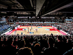 Am Freitag, den 1. März besuchten ca. 70 Schülerinnen und Schüler sowie einige Lehrkräfte das Basketballspiel der Würzburg Baskets gegen HAKRO Merlins Crailsheim in Würzburg.
