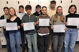 Voller Stolz nahmen Schülerinnen und Schüler der Klasse 10c am letzten Freitag ihre DELF-Diplome entgegen. DELF (diplôme d’études en langue française) ist ein international anerkanntes Sprachendiplom, welches in der 9. Jahrgangsstufe auf dem Niveau A2 in der Realschule Kitzingen abgelegt werden kann.