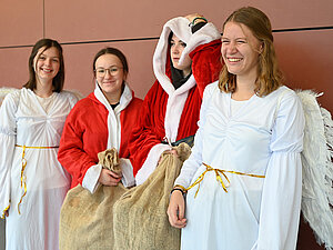 Heute am Nikolaustag, dem 6. Dezember wurden wieder allerelei Nikoläuse verteilt. Hatte die SMV schon vor zwei Wochen zur Nikolausaktion aufgerufen, waren die heute in den ersten Schulstunden mehrere Nikolaus-Truppen mit ihren Engelchen unterwegs, um diese an unsere Schüler*innen zu verteilen.
