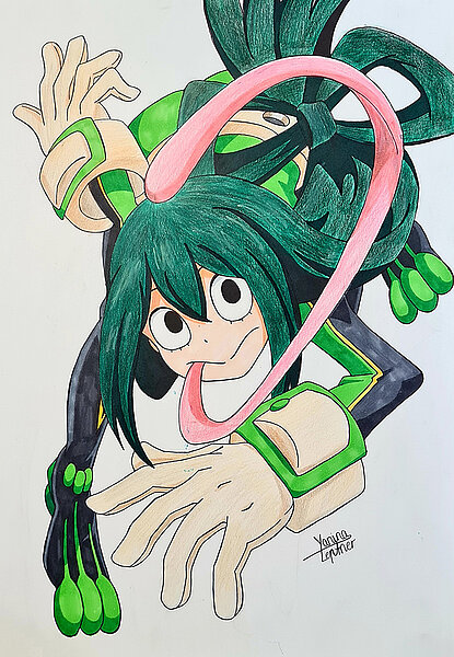Yanina: Pinterest ist für mich eine tolle Quelle, um Bilder zu finden, die ich abzeichnen möchte. Ich kann nicht einfach anfangen zu zeichnen, da komm ich aus dem Konzept. Ich benötige immer eine Vorlage, bevor ich die Zeichnung anfange. Manga Style, das ist die Art, die mir Spaß macht, dadurch, dass viel Farbe im Spiel ist, gefällt mir der Style so gut.