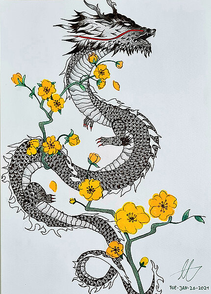 Felicitas: Im Kindergarten habe ich schon immer sehr viel gemalt und auch jetzt zeichne ich fast täglich. Seit fast drei Jahren arbeite ich an verschiedenen Techniken und besonders daran, besser zu werden.