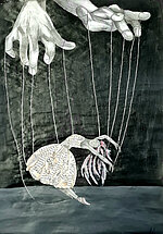 Yanina: An der Skizze sitze ich meist bis zu einer Stunde, da die Vorzeichnung das Fundament für das Bild ist. Für das Nachfahren mit dem Fineliner benötige ich 10 Minuten. Das Ausmalen dauert am längsten, das braucht schon mal ein paar Tage.