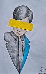 Yanina: Ja, ich stelle es mir bildlich vor, da ich die Größe und Form generell an das DIN-A3-Blatt anpassen muss. Anschließend fertige ich Skizzen an, da fange ich zuerst simpel mit einem Kreis für den Kopf an und dann zeichne ich die grobe Form als leichte Striche auf die Skizze.