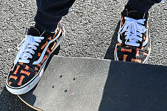 Vans: Der erste Vans Shop wurde am 16.März 1966 in Anaheim, Kalifornien von James Van Doren, Serge D`Elia und Gordy Lee eröffnet. Der Schuh wird in den verschiedensten Farb- und Mustervarianten hergestellt, aber das Waffelmuster der Sohle blieb gleich. Der Schuh ähnelt vom Aussehen her den Chucks von Converse jedoch ist er stabiler und fester.