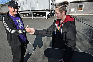 Luis: Abschließend möchte ich noch sagen, dass ich es toll finde, dass Skateboarding sich über Jahrzehnte hinweg immer weiterentwickelt hat. Inzwischen ist es sogar eine Disziplin bei den olympischen Spielen! Für mich bedeutet es aber in erster Linie, sich mit Freunden zu treffen und mit ihnen gemeinsam meiner Lieblingsbeschäftigung nachzugehen. Inzwischen gibt es auch viele Mädchen, die skaten, was ich persönlich super finde. Leider gibt es aber noch zu wenige gute Skateparks in der näheren Umgebung und was definitiv fehlt, ist eine Halle, in der man auch im Winter und bei Regen skaten kann. Skaten ist aber nicht nur ein toller Sport, der unheimlich viel Spaß macht, sondern auch eine Lebenseinstellung, die von Toleranz, Freiheit und Miteinander geprägt ist.