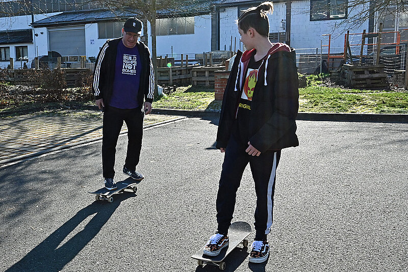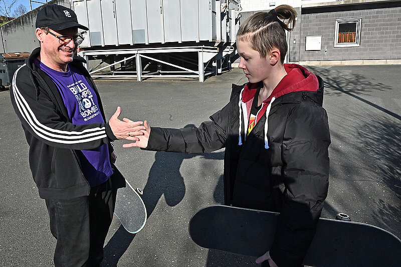 Herr Hellmuth: Mein Lieblingsskater in den Achtzigern war Steve Caballero. Mein erstes Board war auch das Profimodell von Steve. Er hat einen ganz besonderen Stil und ist sowohl in der Halfpipe als auch beim Streetskaten einer der besten Skater gewesen. Er ist inzwischen 58 Jahre alt und skatet immer noch sehr gut! Er war zusammen mit Tony Hawk und ein paar anderen Profis Mitglied der berühmten Bones Brigade. Andrew Reynolds und Torey Pudwill finde ich auch super!
