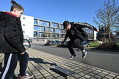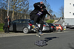 Tricks: Der sogenannte Ollie ist unumstritten der beliebteste und bekannteste Trick auf dem Skateboard. Er ist die Grundlage vieler anderer Tricks, zum Beispiel beim Kickflip oder dem Pop-Shove-It.