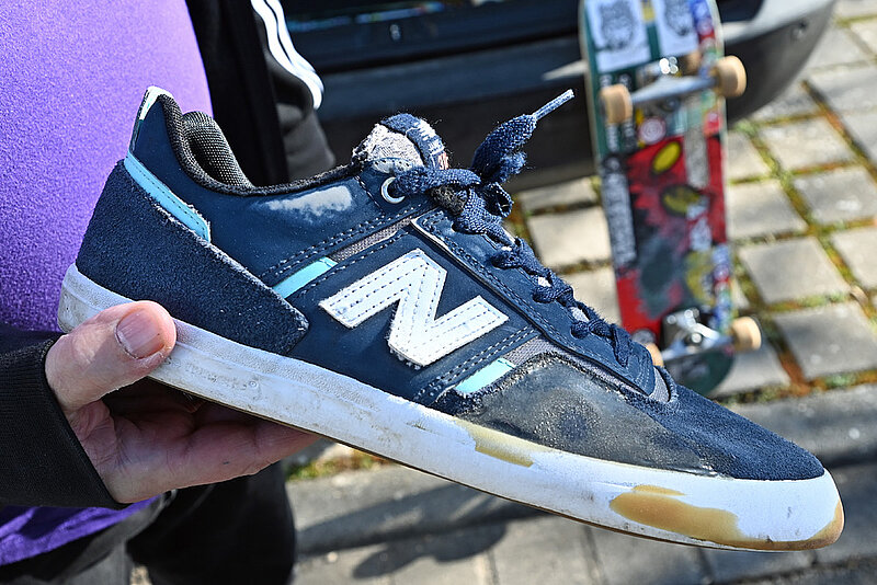 Herr Hellmuth: Ich fahre seit über dreißig Jahren Achsen der Firma „Independent Trucks“. Meine Lieblingsdecks sind die von „Santa Cruz“ und „Powell & Peralta“. Daran hat sich bis heute auch nicht viel geändert. Bei Klamotten finde ich „Element“ sehr gut und Rollen fahre ich von der Firma „Spitfire“. Bei Schuhen bevorzuge ich „DC“, „Adidas“ und „Vans“.