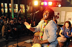 Am 21. Dezember fand in der Staatlichen Realschule Kitzingen ein Weihnachtskonzert unter dem Motto „RHYTHM IS IT“ statt. Wichtigster Gast des Abends war der Musiker André Mabiala, der mit seiner Percussiongroup für eine Wahnsinnsstimmung sorgte und unsere Aula zum Beben brachte. Die Band Mbonda Lokito Percussions besteht aus fünf Musikern. André und seine beiden Söhne, Melanie Weisenberger und der Tänzer Aboubakar Kamagate begeisterten das Publikum der Realschule mit afrikanischen Trommel - Rhythmen und Tanz, sodass das afrikanische Feuer sehr schnell auf die Zuhörer übersprangen.