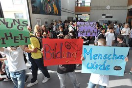 Nach langer organisatorischer Planung war es heute, dem ersten Schultag nach den Ferien, endlich soweit: Die „spontane“ Flashmob-Aktion konnte in der ersten Pause stattfinden.