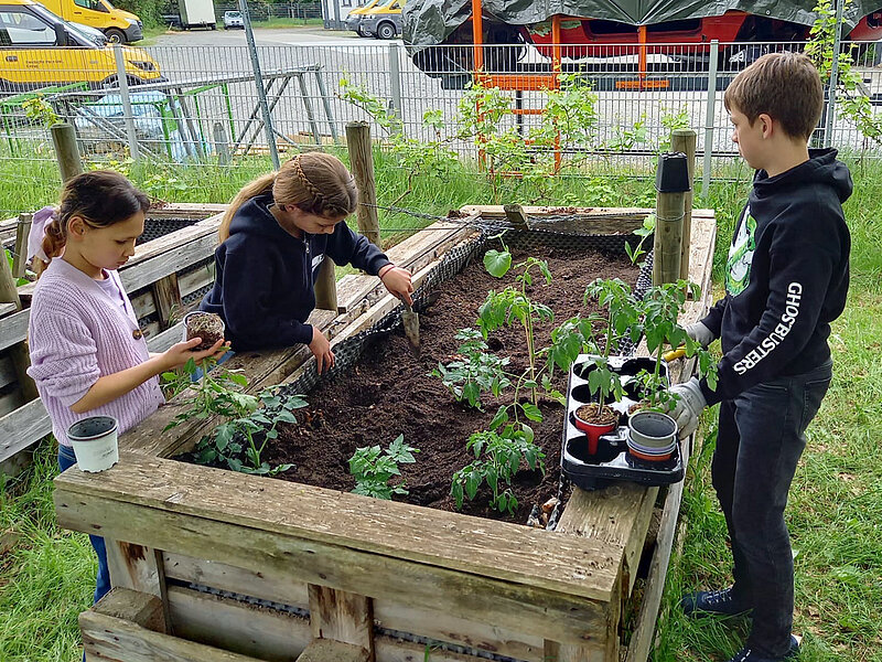Im April 2024 spendete der Elternbeirat und Förderverein der Staatlichen Realschule Kitzingen für das Wahlfach „Schulgarten“ viele verschieden Gemüsepflanzen (Tomaten, Paprika, Gurken, Bohnen, Kohlrabi, diverse Salate, Zucchini, Auberginen, Pepperoni, Kürbisse, Süßkartoffeln, sowie Erdbeerpflanzen und Kräuter (Schnittlauch, Petersilie, Basilikum, Oregano, Kerbel, Koriander, Minze, Thymian) um den interessierten Schülerinnen und Schülern das Pflanzen, die Pflege und zum Schluss eine ertragreiche Ernte beizubringen.